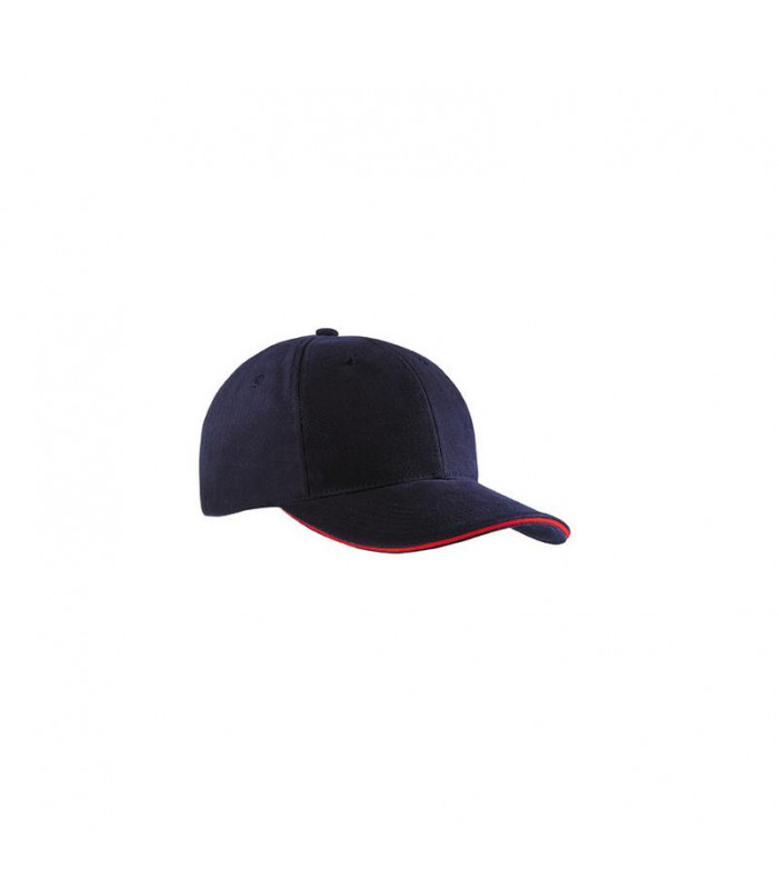 cap sandwich in molte combinazioni colore 6 fori traspiranti imbastiti, 6 cuciture decorative sulla visiera, pannelli frontali laminati. fascetta tergisudore imbottita in satin, chiusura in metallo a clip con asola imbastita, cotone spazzolato extra forte tessuto esterno: 100% cotone,