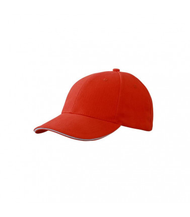 cap sandwich in molte combinazioni colore 6 fori traspiranti imbastiti, 6 cuciture decorative sulla visiera, pannelli frontali laminati. fascetta tergisudore imbottita in satin, chiusura in metallo a clip con asola imbastita, cotone spazzolato extra forte tessuto esterno: 100% cotone,