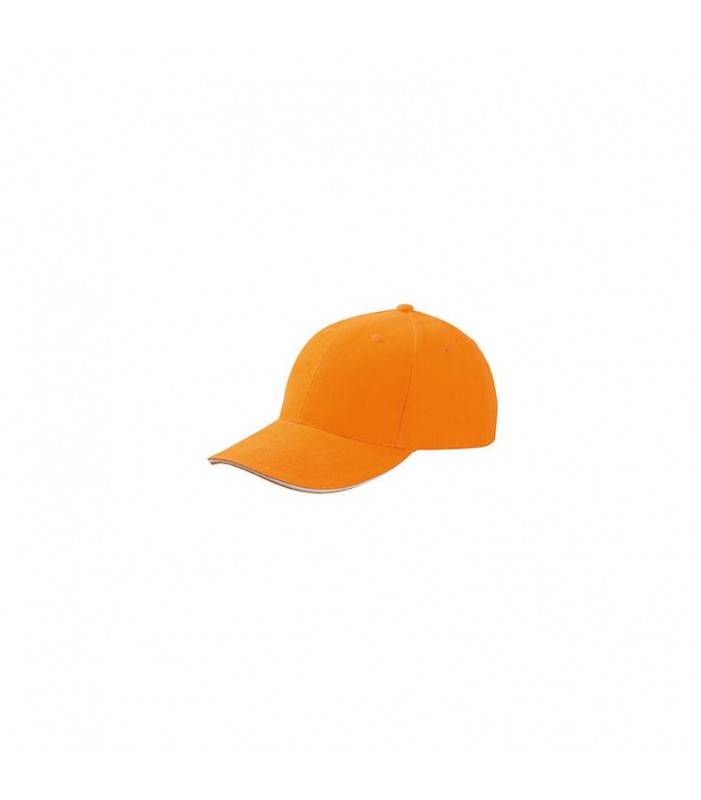 cap sandwich in molte combinazioni colore 6 fori traspiranti imbastiti, 6 cuciture decorative sulla visiera, pannelli frontali laminati. fascetta tergisudore imbottita in satin, chiusura in metallo a clip con asola imbastita, cotone spazzolato extra forte tessuto esterno: 100% cotone,