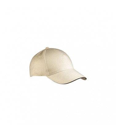 cap a 5 pannelli di alta qualitã con sandwich a contrasto 4 fori traspiranti imbastiti, 6 cuciture decorative sulla visiera. pannello frontale laminato. fascetta tergisudore imbottita in satin. chiusura in velcro, cotone spazzolato tessuto esterno: 100% cotone, ruvido,velcro,policromo, sandwich