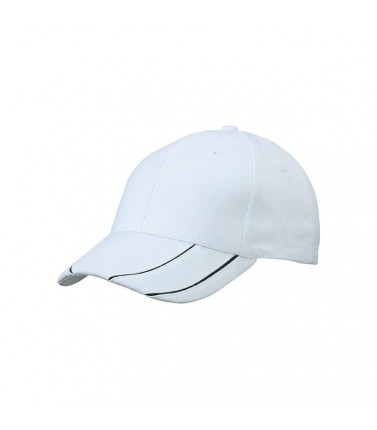 cappello a 6 pannelli ?chiusura a clip in metallo argentato con asola in stoffa. 6 fori imbastiti per la ventilazione, 4 strisce a contrasto dinamico sulla visiera, pannelli frontali laminati, fascetta antisudore imbottita in satin, cotone spazzolato resistente tessuto esterno: 100% cotone, ruvido, policromo, sandwich