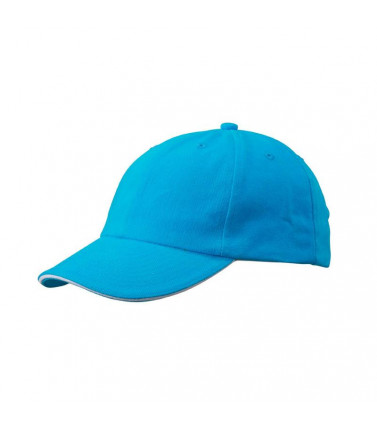 cappello classico con sandwich a contrasto 6 fori traspiranti imbastiti, 8 cuciture decorative sulla visiera, taglio aderente, fascetta tergisudore imbottita in satin, disponibile anche senza sandwich, vedi articolo mb6111, fibbia in metallo argentato e asola ricamata, cotone spazzolato forte tessuto esterno: 100% cotone, ruvido,policromo, sandwich, taglio aderente
