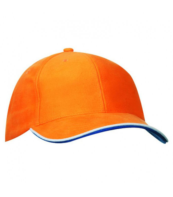 cap a 6 pannelli con doppio sandwich 6 fori traspiranti imbastiti, 6 cuciture decorative sulla visiera, parte inferiore della visiera a contrasto. pannelli frontali laminati, fascetta tergisudore imbottita in satin, chiusura a clip in argento opaco con filetto a costola a contrasto e asola in stoffa , cap bimbo coordinato mb7005. cotone spazzolato forte tessuto esterno: 100% cotone, ruvido, chiusura a clip, policromo, sandwich