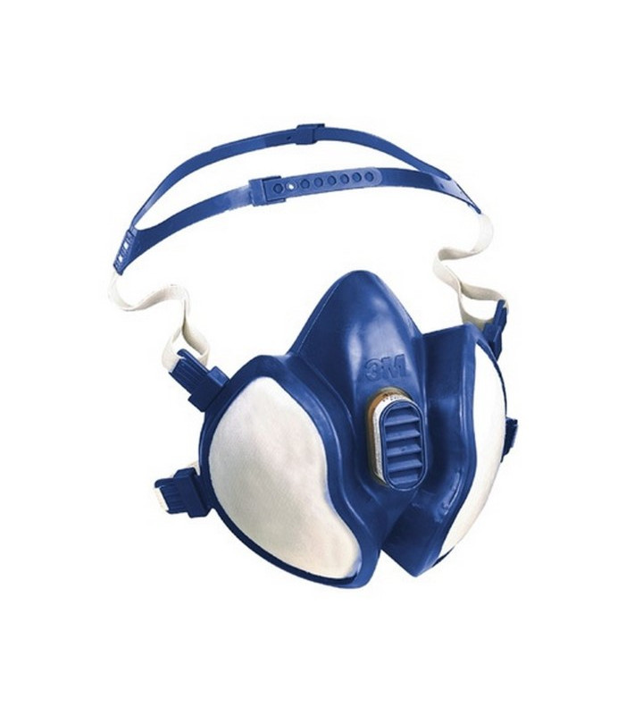 Facciale filtrante, struttura monoblocco senza manutenzione e ricambi, con morbido facciale in elastomero termoplastico, 2 elastici regolabili in quattro punti, 2 grandi filtri incorporati a carbone attivo ricoperti di filtro antipolvere in polipropilene a bassa resistenza respiratoria, valvola di esalalzione in gomma siliconica e valvola di inalazione in polisoprene, protegge da vapori organici fino a 10 volte il tlv o 5000 ppm, polveri fino a 30 volte il tlv