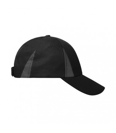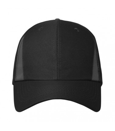 100% poliestere. safety cap con 4 fori di ventilazione ricamati, 6 cuciture decorative sulla visiera, inserti riflettenti sui pannellli, pannelli frontali laminati, chiusura in velcro, taglia unica.