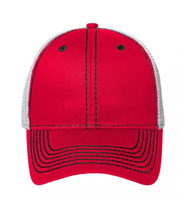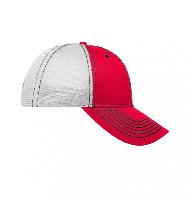 100% cotone, 100% poliestere. cappellino a 6 pannelli, 2 fori di ventilazione, 6 cuciture in colori contrastanti sulla visiera, cuciture in contrasto su tutti i pannelli, pannelli frontali laminati,