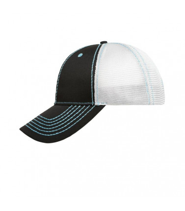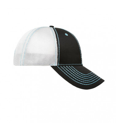 100% cotone, 100% poliestere. cappellino a 6 pannelli, 2 fori di ventilazione, 6 cuciture in colori contrastanti sulla visiera, cuciture in contrasto su tutti i pannelli, pannelli frontali laminati,
