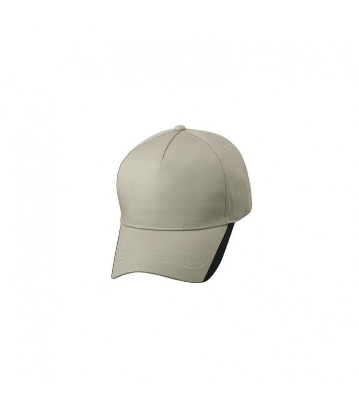 cappello a 5 pannelli con strisce contrastanti 4 fori di aerazione ricamati, 4 cuciture decorative sulla visiera, pannello frontale laminato, fascetta tergisudore imbottita in satin, chiusura a velcro tessuto esterno: 100% cotone, velcro, policromo, sandwich