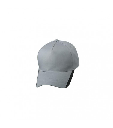 cappello a 5 pannelli con strisce contrastanti 4 fori di aerazione ricamati, 4 cuciture decorative sulla visiera, pannello frontale laminato, fascetta tergisudore imbottita in satin, chiusura a velcro tessuto esterno: 100% cotone, velcro, policromo, sandwich