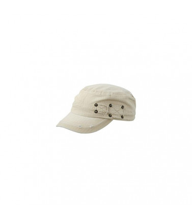 cappello militare a spina di pesce ?targhetta e bottoni automatici in color bronzo, dettagli in stile usurato, 2 cuciture decorative e un bordo di separazione sulla visiera, fascetta tergisudore in satin, chiusura a clip in argento opaco con occhiello metallico tessuto esterno: 100% cotone, taglio aderente