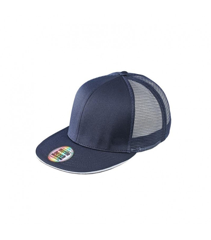 100% poliestere, viesiera piatta, 6 pannelli, pannelli frontali laminati, comodo da indossare grazie alla banda interna imbottita, chiusura 'click & snap'