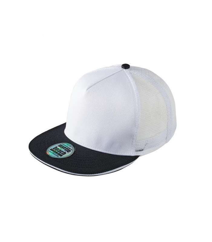 berretto in rete con sandwich alla moda pregiata forma ''high profile'', visiera diritta con adesivi e 6 cuciture decorative, 5 pannelli, pannello anteriore laminato, massimo comfort grazie alla fascia anteriore imbottita, chiusura regolabile ''click & snap'' tessuto esterno: 100% poliestere, policromo.