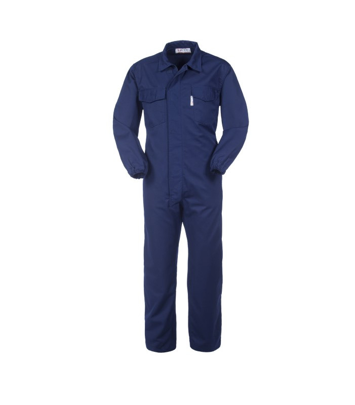 Chiusura con cerniera centrale coperta da patella con punti di velcro, schiena intera, elastico in vita, 2 tasche interne chiuse con punto di velcro, 2 taschini al petto applicati chiusi con aletta e velcro, polsi al fondo manica con elastico negastat hydrofoil antiacido e antistatico irrestringibile 65% poliestere 35% cotone peso 245 g/m2