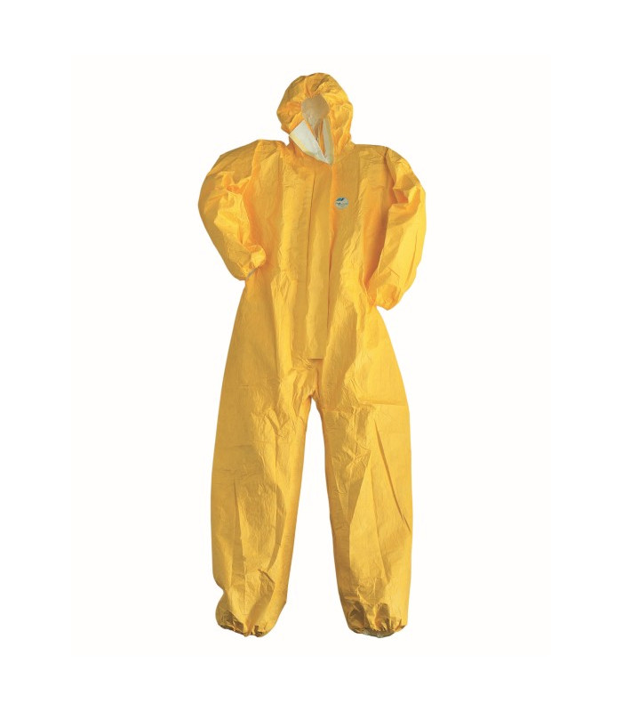 Chiusura con cerniera centrale coperta, con cappuccio, elastico in vita, ai polsi e alle caviglie dupont tychem® c con rivestimento polimerico