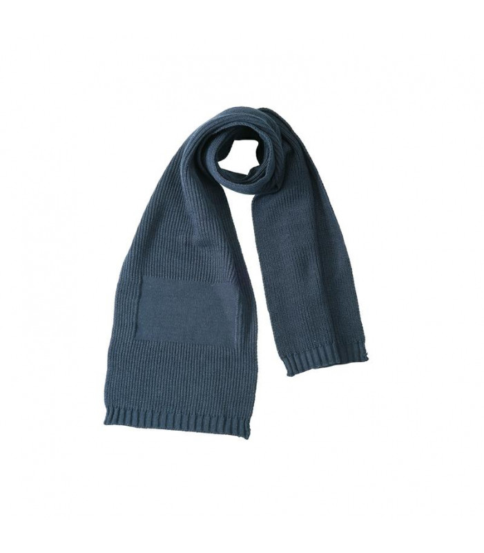 sciarpa a maglia 100% poliacrilico. spazio ad una estremità della sciarpa per la personalizzazione di 20 x 12 cm. dimensioni totali: 180 x 30 cm.
