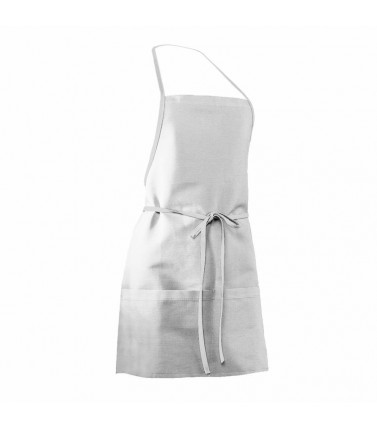 100% cotone canvas. grembiule corto con pettorina, 4 tasche frontali capienti, laccio al collo e in vita in contrasto. (col. whwh, grgr laccio tono su tono)