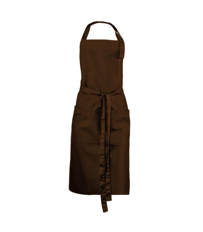 65% poliestere, 35% cotone. grembiule con pettorina, ampia tasca frontale a 2 scomparti, regolabile con fibbia di metallo.