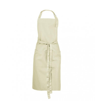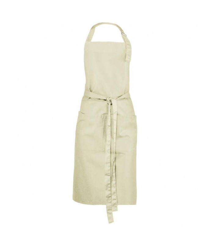 65% poliestere, 35% cotone. grembiule con pettorina, ampia tasca frontale a 2 scomparti, regolabile con fibbia di metallo.
