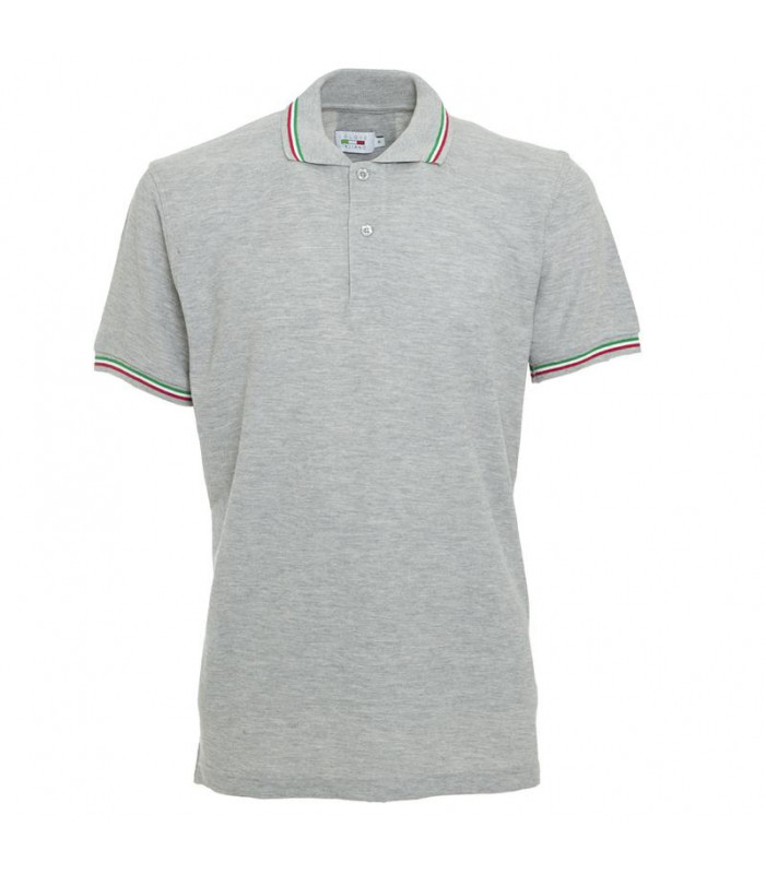 polo maniche corte, 100% cotone piquet. 2 bottoni tono su tono. nastro di rinforzo al collo. bordature tricolore su collo, costina delle maniche e negli spacchetti laterali. grtri 80% cotone, 20% poliestere. 190 g/m