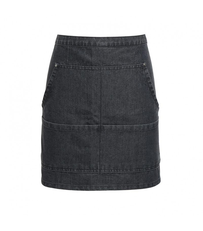 70% cotone, 30% twill di poliestere. davantino in denim stile bar, cuciture a contrasto, inserti in rame, quattro tasche, cordino per chiusura 106 cm. 265 g/m²