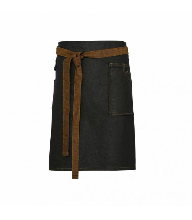 100% cotone. grembiule con finitura in acrilico che crea una protezione impermeabile, cuciture e tessuto di jeans a contrasto, una tasca di grandi dimensioni applicata e una di servizio. lavabile a 40â°c. cordoni in vita lunghi 1 metro ciascuno.