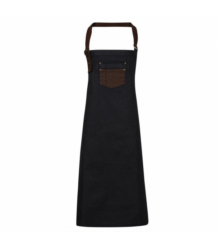 100% cotone. grembiule con finitura in acrilico. laccio in vita in eco-pelle lungo 1m e laccio al collo regolabile con fibbie metalliche. cuciture e tessuto in jeans a contrasto, tasca di grandi dimensioni applicata e tasca di servizio, lavabile a 40â°c.