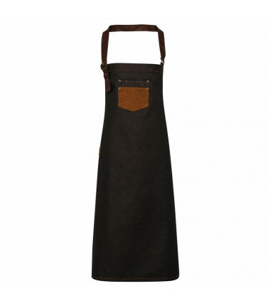 100% cotone. grembiule con finitura in acrilico. laccio in vita in eco-pelle lungo 1m e laccio al collo regolabile con fibbie metalliche. cuciture e tessuto in jeans a contrasto, tasca di grandi dimensioni applicata e tasca di servizio, lavabile a 40â°c.