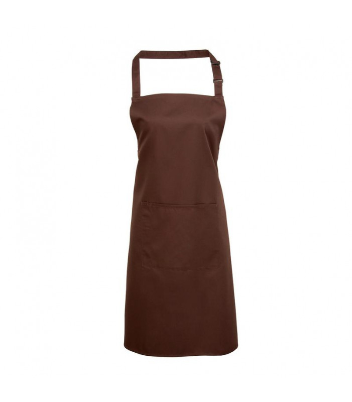 grembiule con pettorina 65% poliestere, 35% cotone con tasca centrale e una tasca per penna separata, laccio collo regolabile con fibbia.