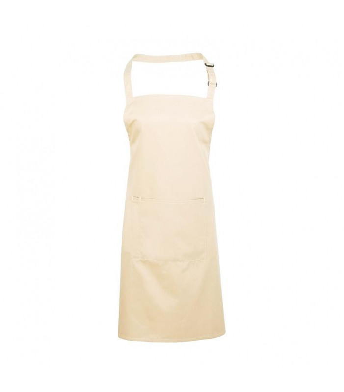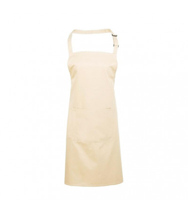 grembiule con pettorina 65% poliestere, 35% cotone con tasca centrale e una tasca per penna separata, laccio collo regolabile con fibbia.