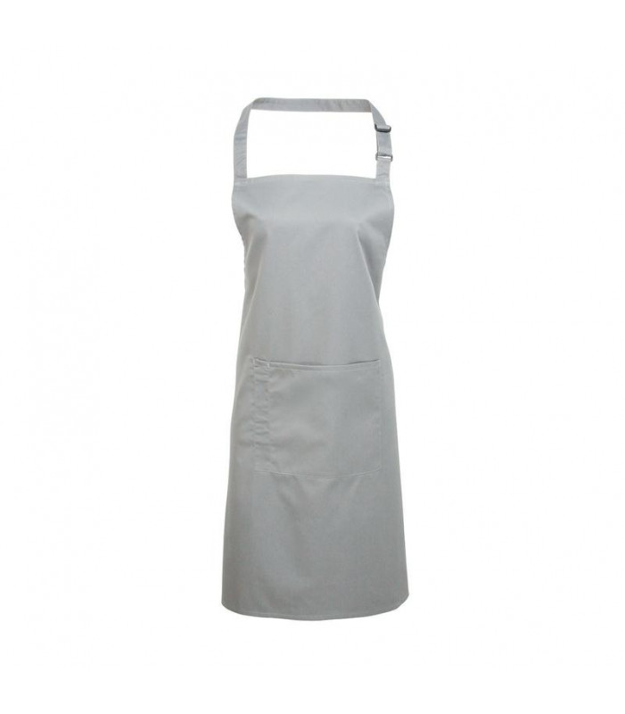 grembiule con pettorina 65% poliestere, 35% cotone con tasca centrale e una tasca per penna separata, laccio collo regolabile con fibbia.