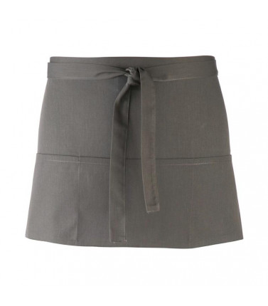 grembiule corto in stile bar con tre tasche frontali. 65% poliestere 35% cotone twill. lavabile a 60° in lavatrice domestica, e 85° in lavatrice industriale.