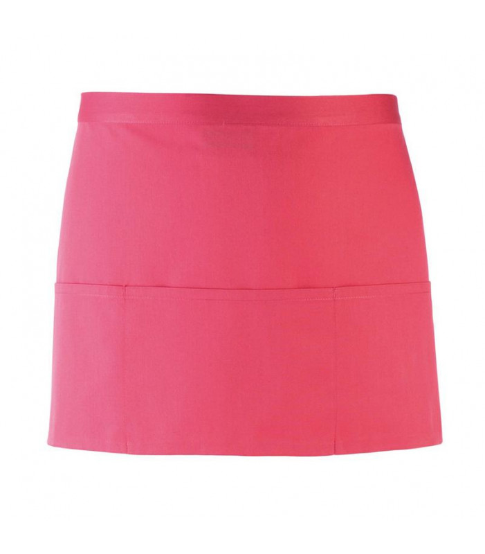 grembiule corto in stile bar con tre tasche frontali. 65% poliestere 35% cotone twill. lavabile a 60° in lavatrice domestica, e 85° in lavatrice industriale.