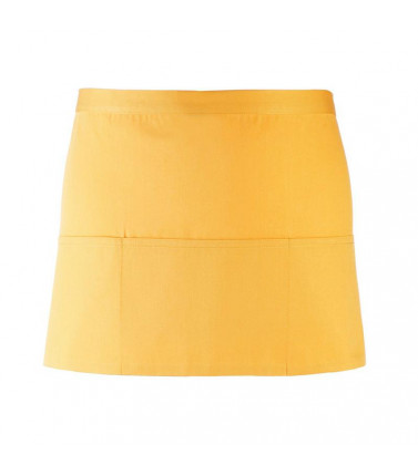 grembiule corto in stile bar con tre tasche frontali. 65% poliestere 35% cotone twill. lavabile a 60° in lavatrice domestica, e 85° in lavatrice industriale.