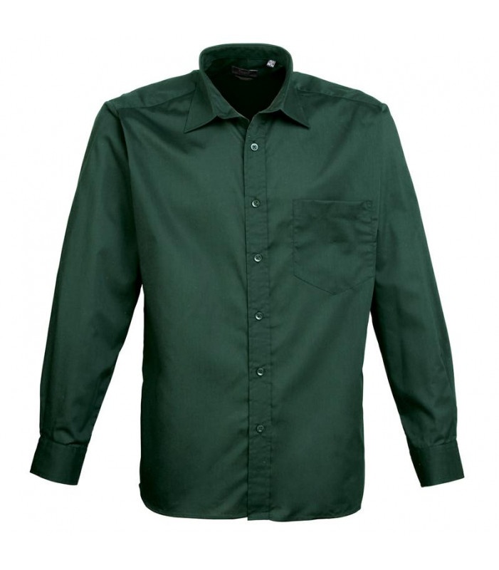 camicia a maniche lunghe in popeline, 65% poliestere, 35% cotone, bottoni sui polsini, taschino lato cuore,