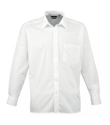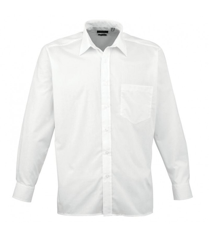 camicia a maniche lunghe in popeline, 65% poliestere, 35% cotone, bottoni sui polsini, taschino lato cuore,
