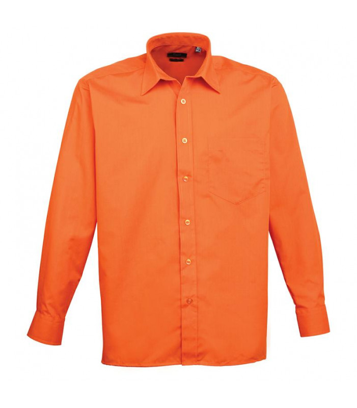 camicia a maniche lunghe in popeline, 65% poliestere, 35% cotone, bottoni sui polsini, taschino lato cuore,