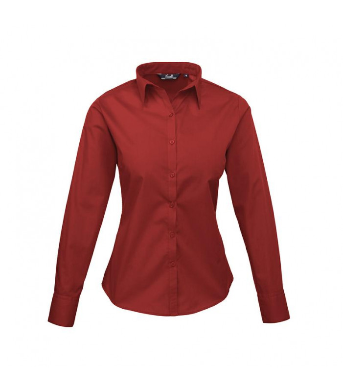 camicia manica lunga in popeline, 65% poliestere, 35% cotone, finiture con pieghe sul retro e sul davanti per un taglio piu' aderente, colletto morbido, due bottoni sui polsini, .