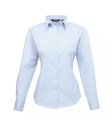 camicia manica lunga in popeline, 65% poliestere, 35% cotone, finiture con pieghe sul retro e sul davanti per un taglio piu' aderente, colletto morbido, due bottoni sui polsini, .