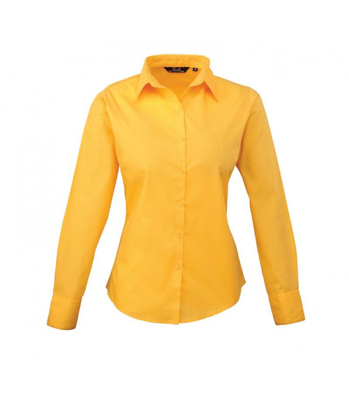 camicia manica lunga in popeline, 65% poliestere, 35% cotone, finiture con pieghe sul retro e sul davanti per un taglio piu' aderente, colletto morbido, due bottoni sui polsini, .