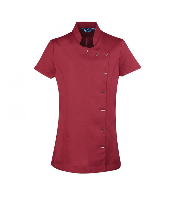 100% poliestere. tunica pensata al mondo spa e bellezza con 8 bottoni a barra, spacchi laterali e plisettatura nella parte posteriore per facilitare i movimenti.