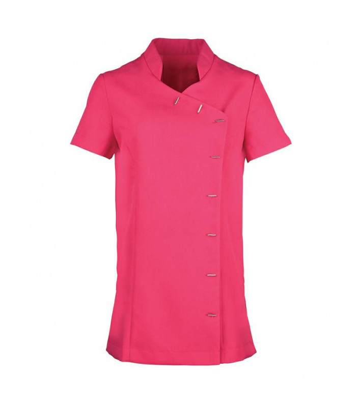 100% poliestere. tunica pensata al mondo spa e bellezza con 8 bottoni a barra, spacchi laterali e plisettatura nella parte posteriore per facilitare i movimenti.
