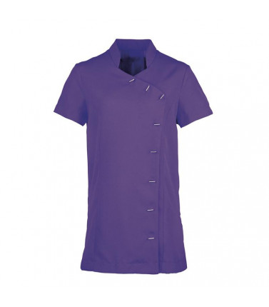 100% poliestere. tunica pensata al mondo spa e bellezza con 8 bottoni a barra, spacchi laterali e plisettatura nella parte posteriore per facilitare i movimenti.