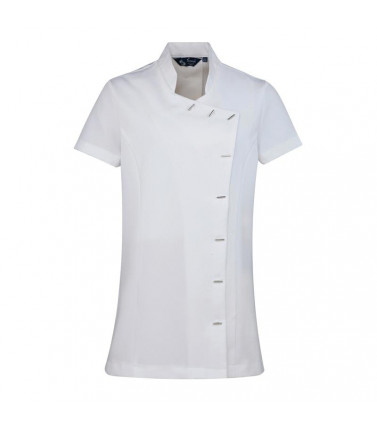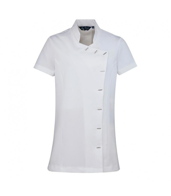 100% poliestere. tunica pensata al mondo spa e bellezza con 8 bottoni a barra, spacchi laterali e plisettatura nella parte posteriore per facilitare i movimenti.