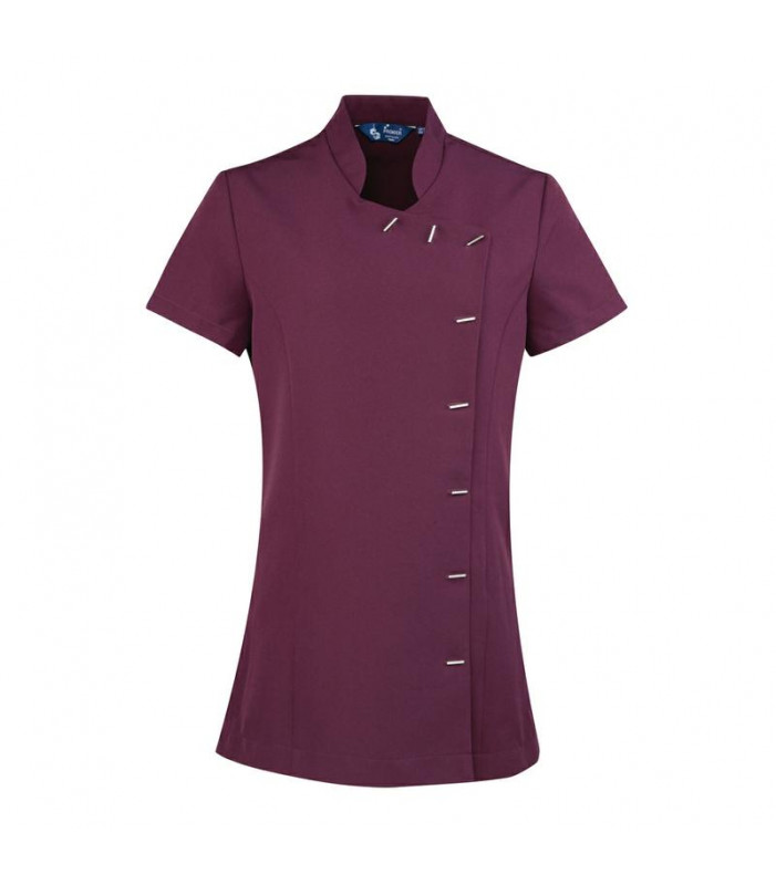 100% poliestere. tunica pensata al mondo spa e bellezza con 8 bottoni a barra, spacchi laterali e plisettatura nella parte posteriore per facilitare i movimenti.