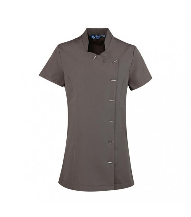 100% poliestere. tunica pensata al mondo spa e bellezza con 8 bottoni a barra, spacchi laterali e plisettatura nella parte posteriore per facilitare i movimenti.