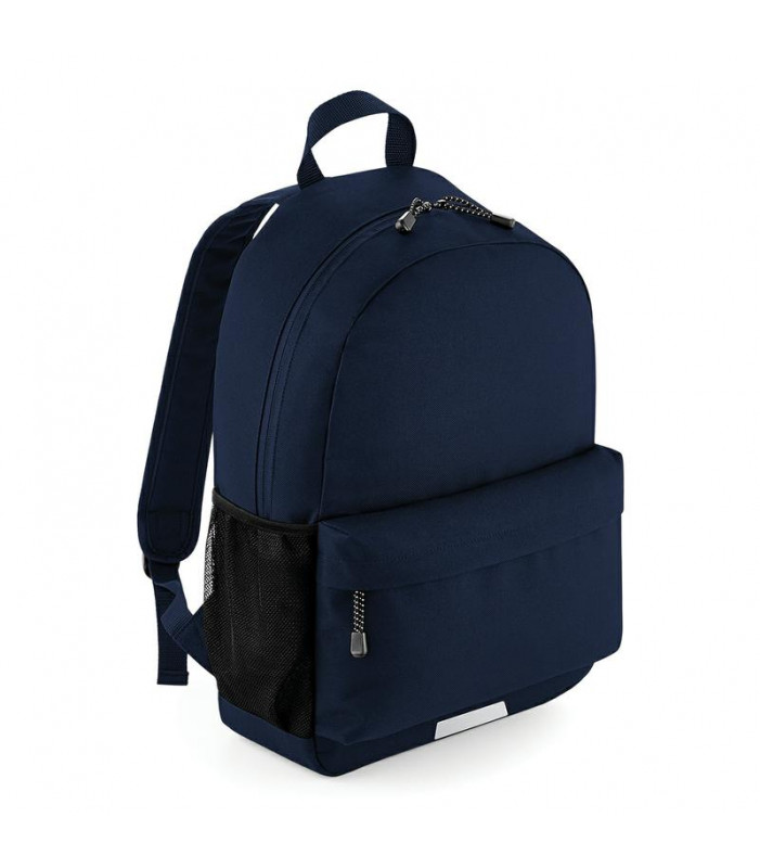 600d poliestere. dettagli riflettenti ad alta visibilitã , portabottiglie laterali in rete, etichetta identificativa interna, compartimento principale regolabile con zip, tasca frontale con zip, tasca interna a sacchetto, pannello posteriore imbottito, spalline imbottite e regolabili, gancio per presa a mano. dimensioni: 31 x 45 x 19 cm, capacitã : 18 litri.area di stampa: 20 x 12 cm. 150 g/m