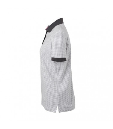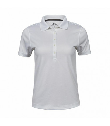 100% micropoliestere funzionale. polo sportiva donna, tessuto traspirante, colletto a costine piatte, abbottonatura con rifinitura, leggermente sfiancata.