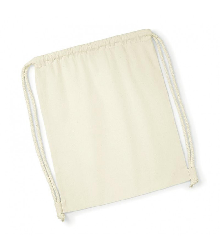 100% cotone organico. sacca sportiva in cotone certificato, ampia superficie di stampa, attaccature esterne per facilitare la decorazione, chiusura con cordoncino. dimensioni 37x46 cm, capacitã : 12 litri, area stampabile: 30x22 cm.