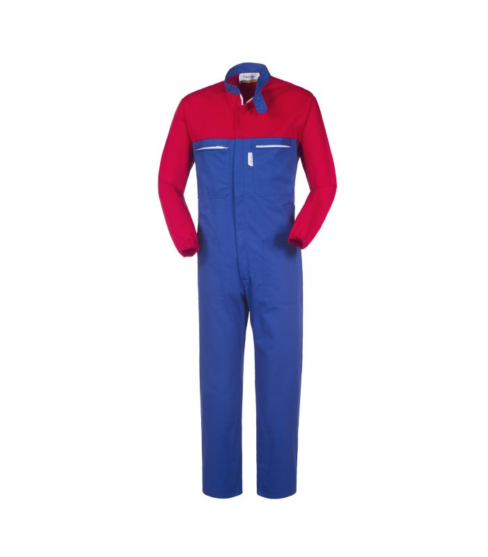Chiusura con cerniera centrale coperta, elastico in vita posteriore, carrè anteriore e posteriore e maniche di colore a contrasto, collo alla coreana chiuso con due bottoni, 2 tasche anteriori applicate, 2 taschini applicati al petto chiusi con cerniera, elastici ai polsi gabardine, 65%poliestere 35% cotone, peso 245 g/m2