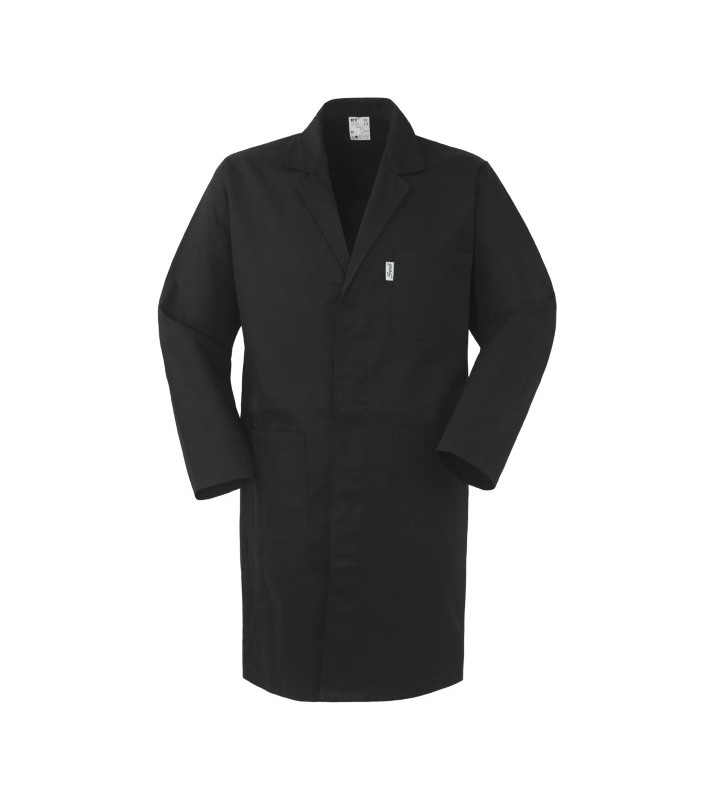 Chiusura con bottoni coperti, collo aperto, schiena intera, 2 tasche e 1 taschino applicati, senza martingala drill 3/1, 100% cotone irrestringibile, peso 280 g/m2 per colore bianco drill 2/1, 100% cotone irrestringibile, peso 210 g/m2 per colore nero